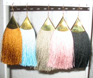 | Boucles d'oreilles fils de soie, modèle "Pompon" |